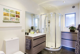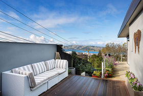 Perfectly located to capture fabulous sun and the breath-taking panoramic vista over our beautiful city and harbour is this stunning executive style home. This residence has undergone a professional renovation project which has produced easy luxurious living and refined style. Designed with a strong focus on the expansive view the upper level offers open plan kitchen/dining/living opening to an enclosed deck and wrap around balcony which is an ideal entertaining zone. The master bedroom which also accesses the balcony is serviced by a fully tiled ensuite including a bath and has the luxury of a dressing room. The second bedroom on this level has its own elegant tiled ensuite. On the lower level are the additional two large bedrooms and a separate laundry with toilet and hand basin. Further features include heated tiled floors in the kitchen and bathrooms, a heat pump, double glazing, plentiful storage; easy care landscaped grounds, a carport and sealed off street parking. Sit back and enjoy easy modern living in this highly sought after location. A stunning property.