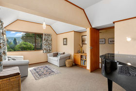 Little is given away from the street, but in this prime location, you will discover this quality architecturally designed home. On a compact 491m² site enveloped by a beautifully landscaped garden, the residence enjoys plentiful sunshine and a wonderful panoramic outlook. First time on the market ever and absolutely meticulously presented, the home expands over 2 levels. Comprising on the upper level a near new kitchen, which leads seamlessly to a dining room, beautiful living room with gas fire in a feature stone fire surround, large windows capture all the sunlight and lovely views, master bedroom with build in cabinetry. A second double bedroom, bathroom, separate toilet and internal access to a single garage. On the lower level is an additional garage/workshop, a large third bedroom serviced by a bathroom, separate toilet and laundry room. Also provided is a spacious utility room which offers real flexibility for many uses. Further features of the exceptional property include double glazed windows, well insulated, security system, plentiful storage and trailer park. The home makes for easy living for busy professionals and also provides options for families with teenagers and the advantages of the location goes without saying. This is a very special property! Appreciation upon inspection. (Prior offers considered)