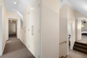 Up the solid concrete, tiled staircase is a mezzanine floor from which are four further bedrooms. The first is a neat loft room complete with walk-in wardrobe, skylights and adjoining guest bathroom. The next bedroom is very spacious, with walk-in wardrobe and a built in desk, followed by another double bedroom with built in desk and storage. The spacious master bedroom has its own balcony, spacious walk-in wardrobe, and a tiled ensuite bathroom, with dual access, that includes a bath. The thoughtful design includes many architectural features and there is a massive amount of storage. Warm with tiled underfloor heating and a Daikin heatpump, fully insulated and partially double glazed, this is definitely a home to move into and enjoy modern comforts.