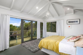 This 4-bedroom, 2-bathroom home is set on two levels with decks on each level. The upper level has two bedrooms which share a private balcony. The modern bathroom with underfloor heating has both bath and shower, vanity and toilet. The cook in the family will love the new kitchen with walk in butler's pantry, induction hob, electric oven, Bosch dishwasher and working with the amazing view. The lounge has bi-fold windows and a wood-burner for winter comfort, this can be closed off from the dining/kitchen area or the doors opened for a more open plan feel.