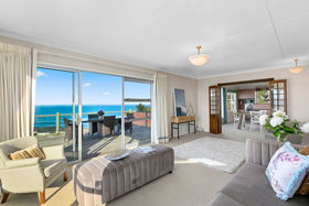 Unquestionably positioned capturing an expansive St Clair beach vista from arguably one of the most sought after sites in St Clair. Built around 1974, this very well presented 220m2 (-/+) property still retains many typical features of its 1970's flare and design, with its split level living, cedar cladding and retro style, it enjoys modernised functional living throughout. It offers 4 bedrooms, 2 bathrooms, separate laundry, open plan kitchen/dining which flows through to a good sized living room which accesses a large sunny deck with absolute breath-taking ocean views. There is easy access out to a beautifully landscaped, sheltered and sunny courtyard area - great for BBQ's and entertaining. Vehicles are well accommodated for with a large internally accessed garage and carport. This unique property is perfectly comfortable to live in as it presents but also offers the opportunity to enhance/renovate to one's own personal specifications. The property is simply all about its "prime position" and would be well suited to couples or families desiring residential living in one of St Clair's real estate hotspots. Located an easy short stroll to the esplanade, cafes, bars, hot salt water pool and stunning St Clair beach.