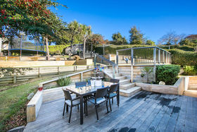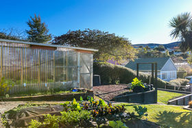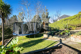 The hidden gem is the outdoor living area and terraced backyard which includes plenty of space for the trampoline, glasshouse, and vegetable garden.