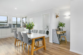 This home has it all with the new and modern kitchen and open plan living. The bathroom has a shower, toilet, and vanity plus there is a 2nd separate toilet. Separate conveniently placed laundry, and central office nook. Retro fitted double glazing, wood burner, heat-pump, moisture master system, great insulation, plus gas hot water. The rear section is fully fenced making it easy to know where the children are and see them from the kitchen. Separate large double garage with workshop space, plus a large studio room. Schools, parks and child centres nearby. It really doesn't get much better than this.