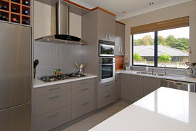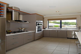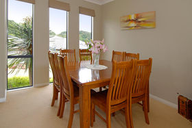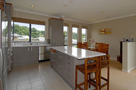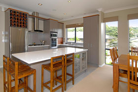 The kitchen boasts stone benches, quality stainless steel appliances and oversees the dining and family area.