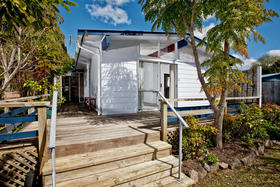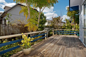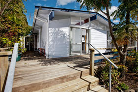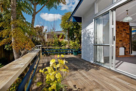Settle in and simply enjoy or add your own flair to this 3 bedroom attractive home on its own private 404 square meter freehold section. Surrounded by a mature sunny garden facing north with wide timber terraces fronting large open plan lounge and dining with pitched beamed ceilings a delightful feature.