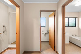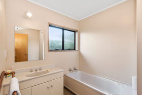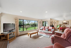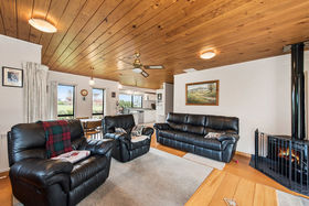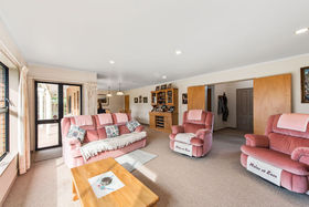 The three bedroom plus study and two living areas presents as a very comfortable low maintenance home constructed from brick & cedar. A cosy wood burner in the kitchen / dining area plus two heat pumps take care of heating. There is heaps of hall cupboard storage and a large double garage which is where the laundry is located.