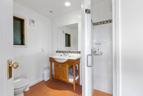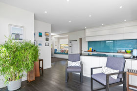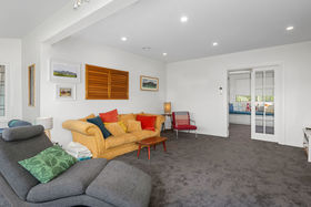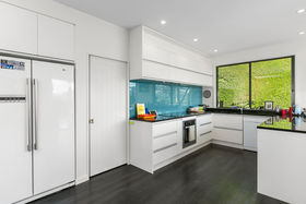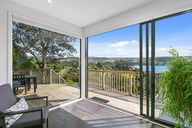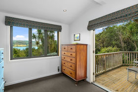 This 4-bedroom, 2-bathroom home is set on two levels with decks on each level. The upper level has two bedrooms which share a private balcony. The modern bathroom with underfloor heating has both bath and shower, vanity and toilet. The cook in the family will love the new kitchen with walk in butler's pantry, induction hob, electric oven, Bosch dishwasher and working with the amazing view. The lounge has bi-fold windows and a wood-burner for winter comfort, this can be closed off from the dining/kitchen area or the doors opened for a more open plan feel.